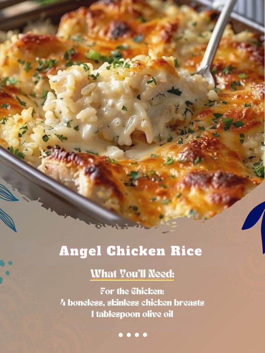 Angel Chicken Rice is a creamy, flavorful dish that features tender chicken in a rich sauce served over a bed of rice. This easy-to-make comfort food is perfect for a cozy dinner. Here’s how you can make it: