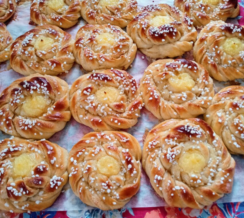 Kardemummabullar med Vaniljkräm is a delicious Swedish pastry that combines the soft, sweet, and fragrant texture of kardemummabullar (cardamom buns) with the rich and creamy filling of vaniljkräm (vanilla custard). These buns are typically enjoyed for fika, a Swedish coffee break, or as a delightful treat at any time of day.Here’s a step-by-step recipe to make Kardemummabullar med Vaniljkräm at home: