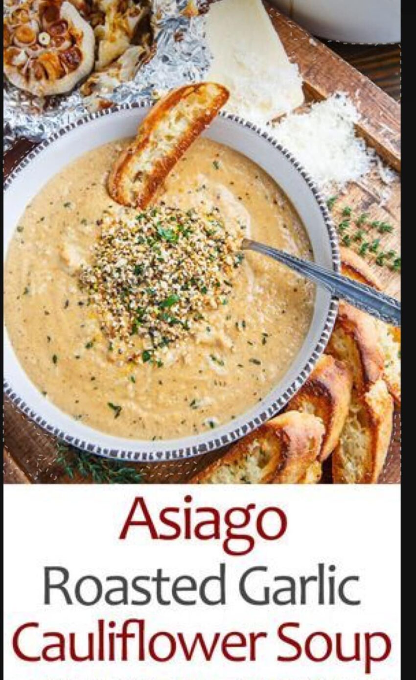 Here’s a simple and delicious recipe for Roasted Garlic Cauliflower Soup: