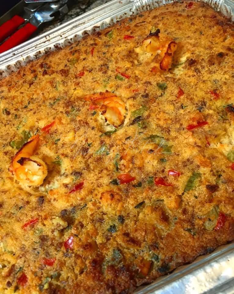This stuffing makes a great side dish for holiday meals, or a flavorful stuffing for baked chicken or turkey. It’s a Southern classic that brings the taste of the coast to your table!